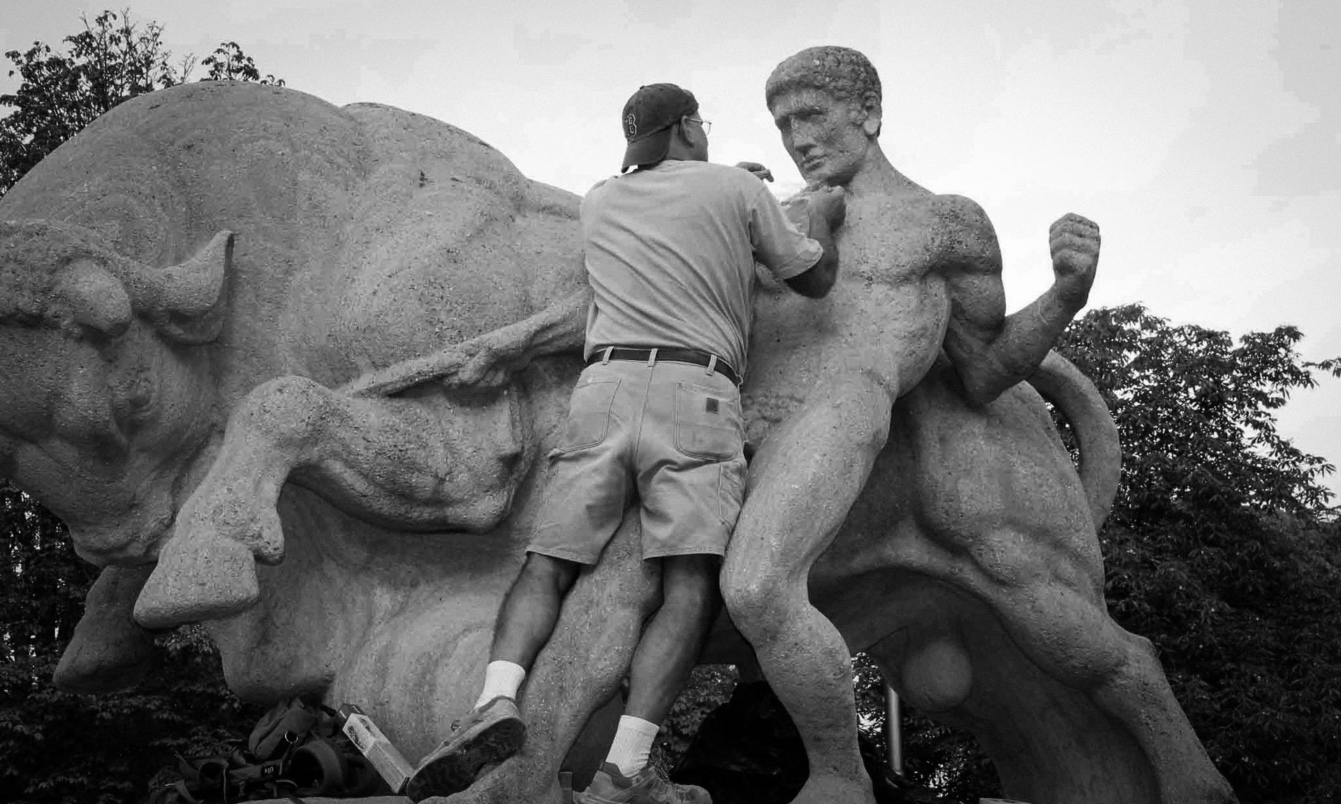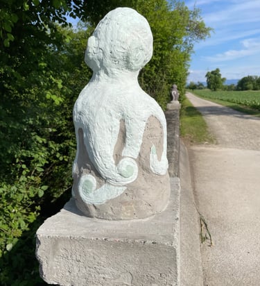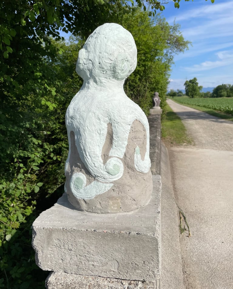 This sculpture was conceived for a small rural bridge on the Jonen Brook near the Reuss River, and is made from cast and painted cement.